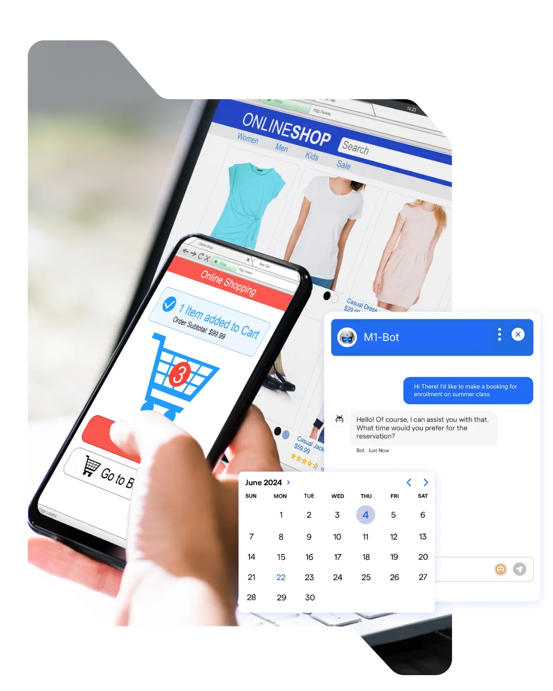 Customers message stores before they buy. They ask about products, sizes, availability, delivery and returns across WhatsApp, websites and social media. M1-Bot handles these conversations through chat, so enquiries are answered, abandoned carts are recovered and support teams don't have to manage everything manually.