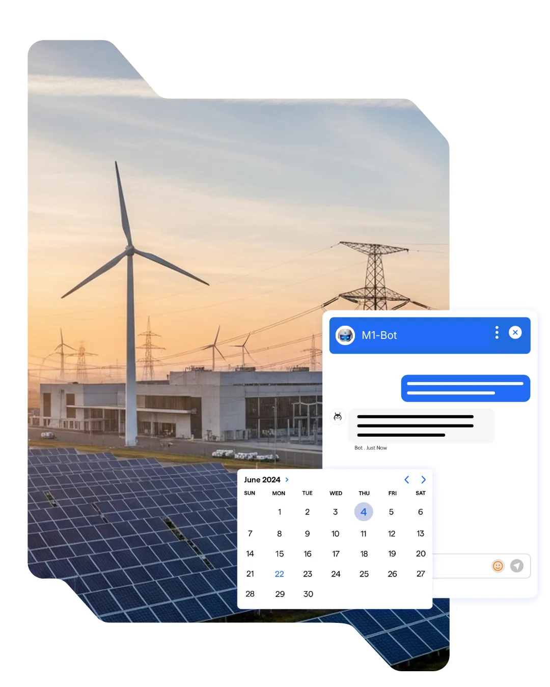 M1-Bot handles customer conversations that come into an energy or utility provider through chat. It replies to common questions, provides service information, schedules appointments, shares updates and routes complex issues to the right support team. It supports energy and utility teams by taking care of routine conversations, not replacing people.